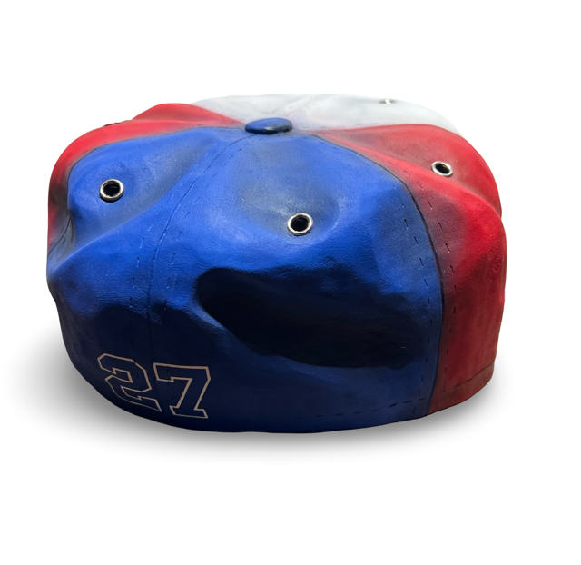 This hand carved hat features the autograph of Philadelphia 76ers great, Allen Iverson “The Answer”. This JSA-authenticated piece features the classic 90s Sixers logo, Iverson’s #3 on the side and a “The Answer” graphic under the brim. As with all my athlete collaborations, this carving will never be replicated.