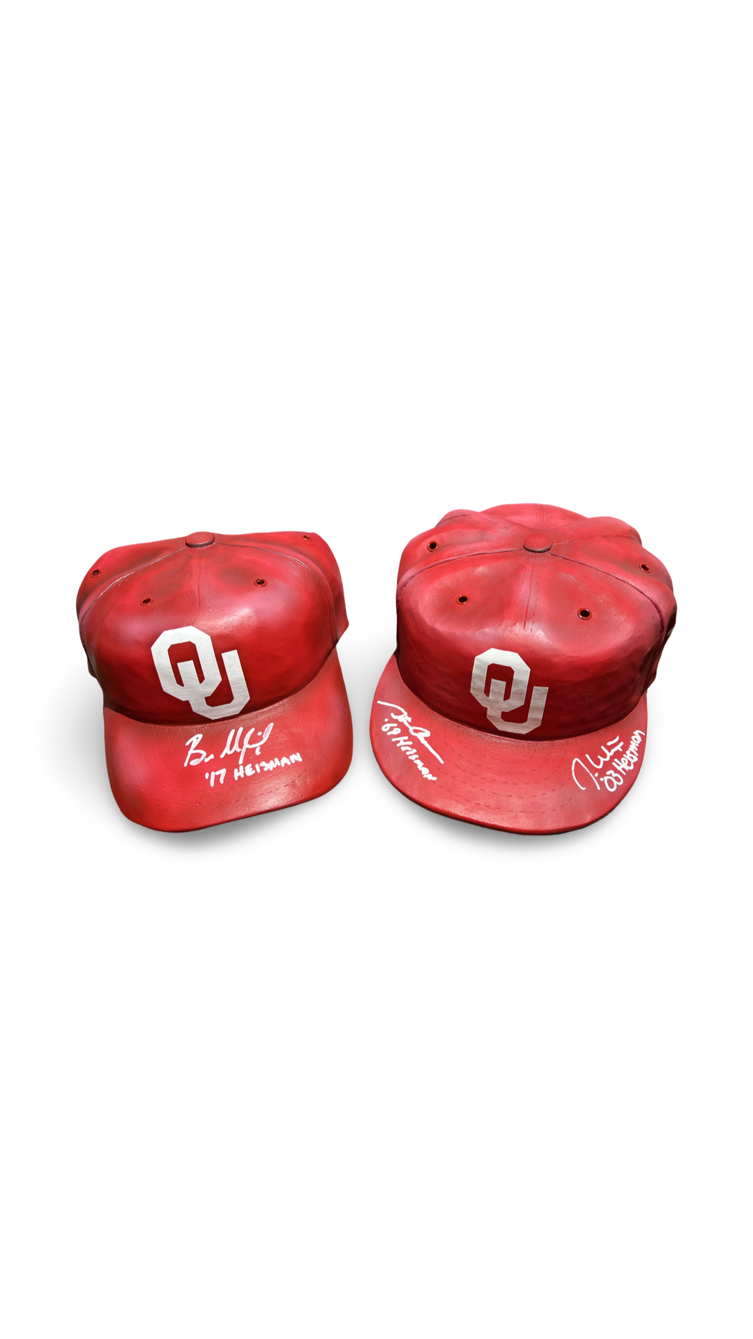 Hand-Carved University of Oklahoma Baseball Cap – Dual-Signed by Heisman Trophy Winners Steve Owens & Jason White